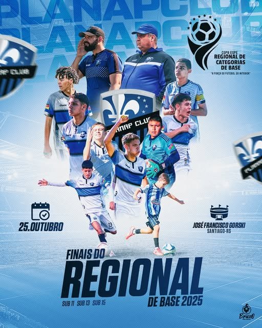 Após o adiamento devido às fortes chuvas, finalmente neste sábado (25) acontecem as tão aguardadas finais do Regional de Categorias de Base! O Planap parte novamente rumo a Santiago em busca de grandes conquistas e mais um capítulo histórico para nossa base! SUB 15 Nossa equipe enfrenta o Cia Esportes